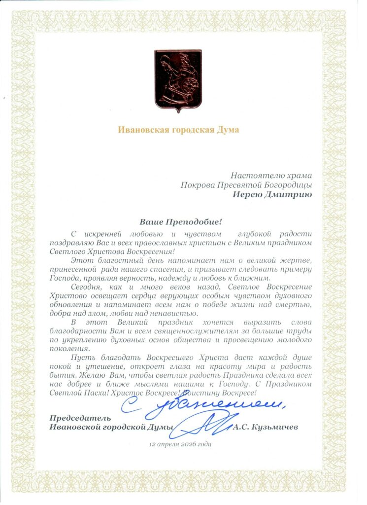 Поздравление председателя Ивановской городской Думы Добавить комментарий Поделиться:TwitterВКонтактеОдноклассникиGoogle